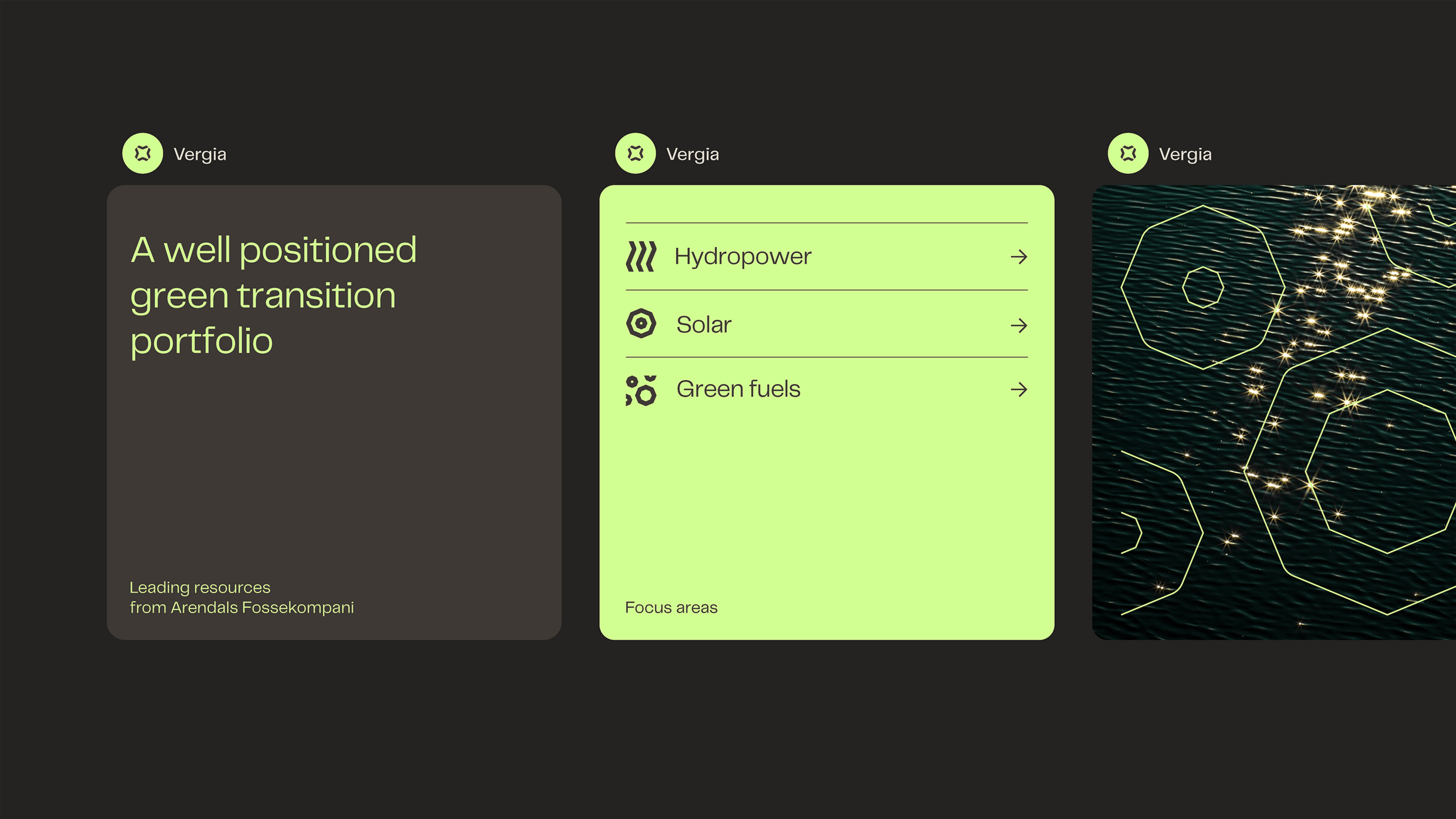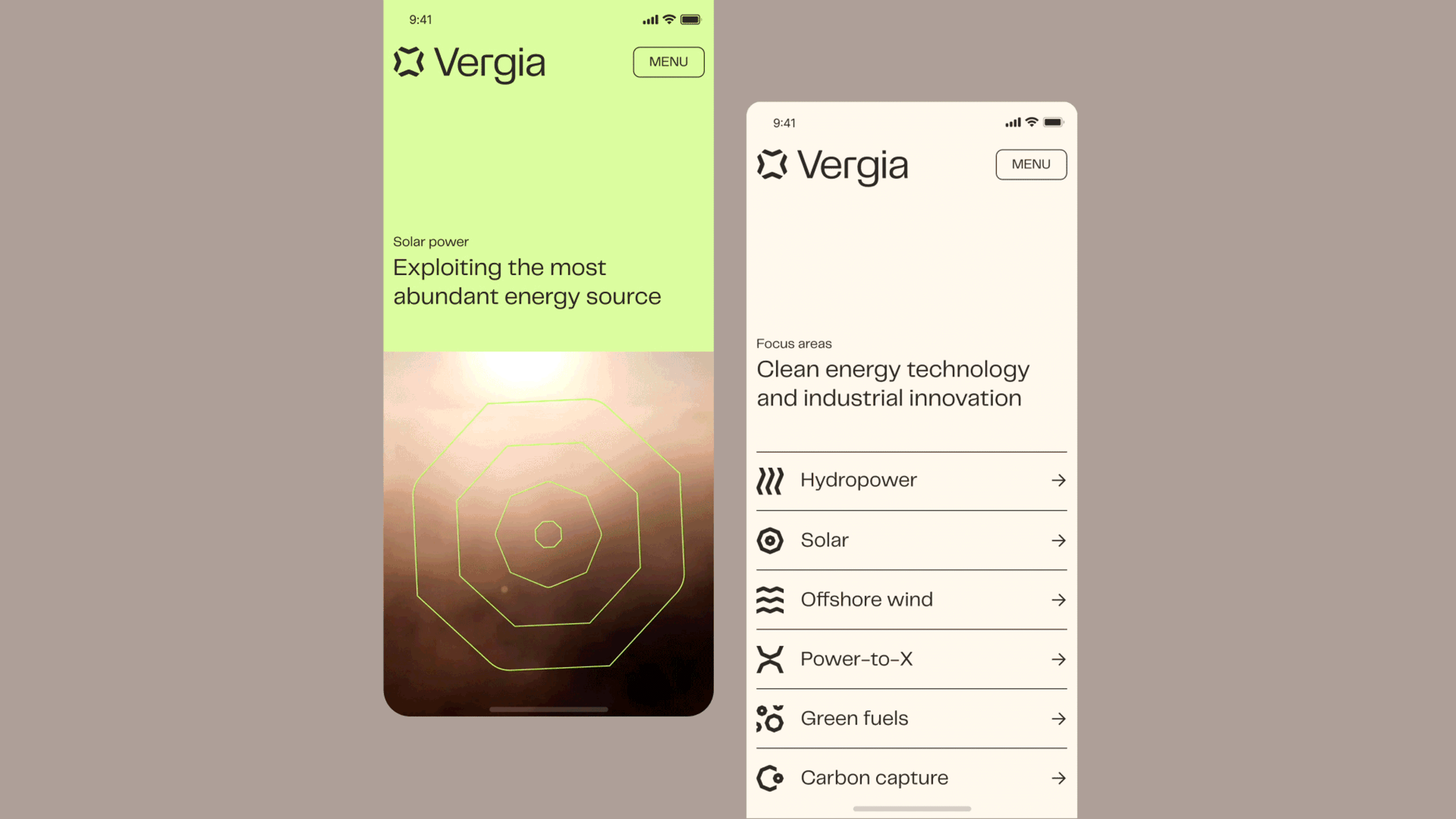 Vergia forvalter en portefølje av industrielle teknologier som i kombinasjon akselererer det grønne skiftet. I tett samarbeid med Vergia utviklet Emdash Oslo en fremtidsrettet og strategisk forankret visuell identitet, og Finde stod for utvikling av nettsiden.
